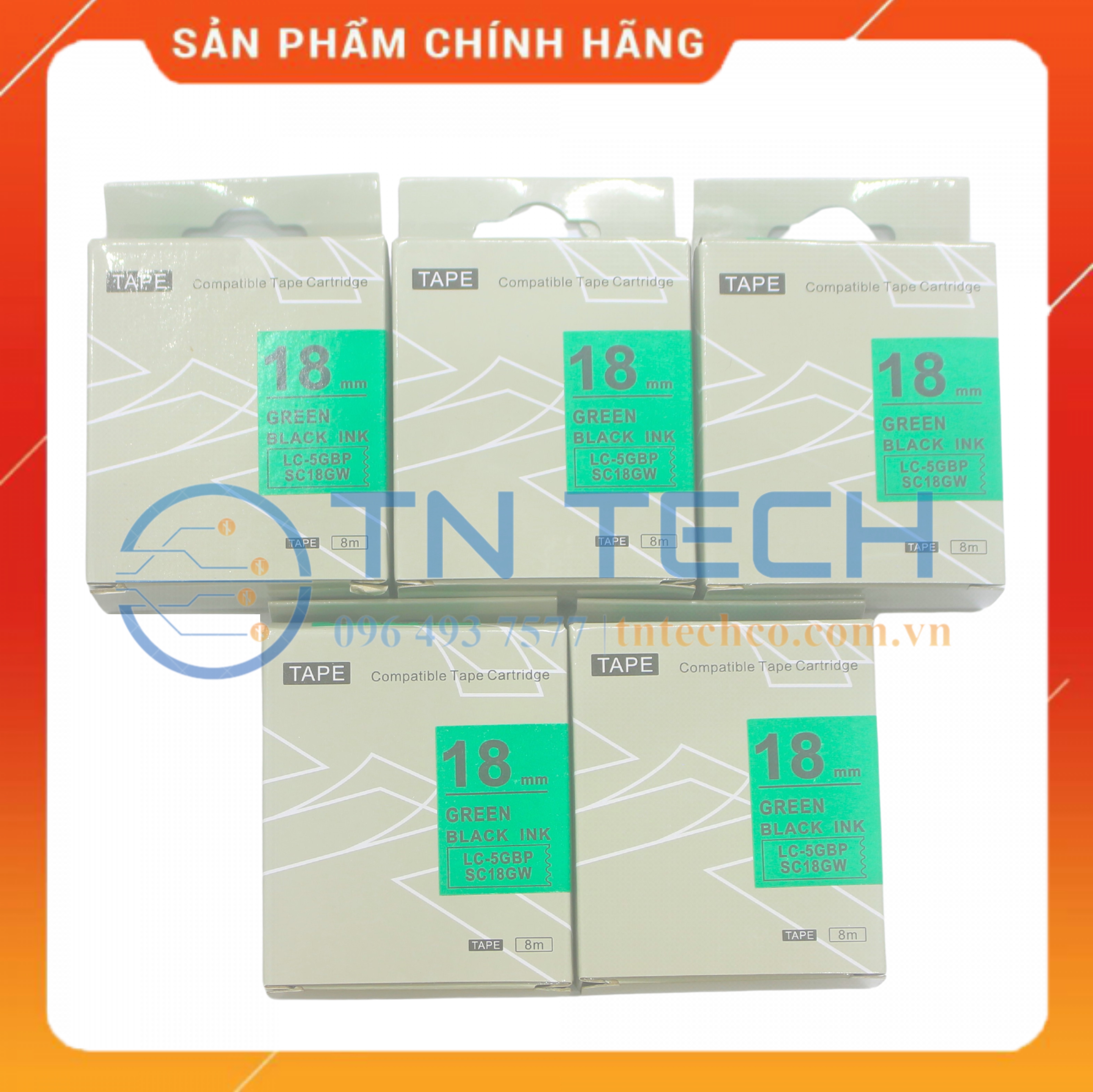 ✨NHÃN IN TEPRA-EPSON LC-5GBP (SC18GW) – CHỮ ĐEN NỀN LÁ 18MM X 8M [Hàng nhập khẩu]