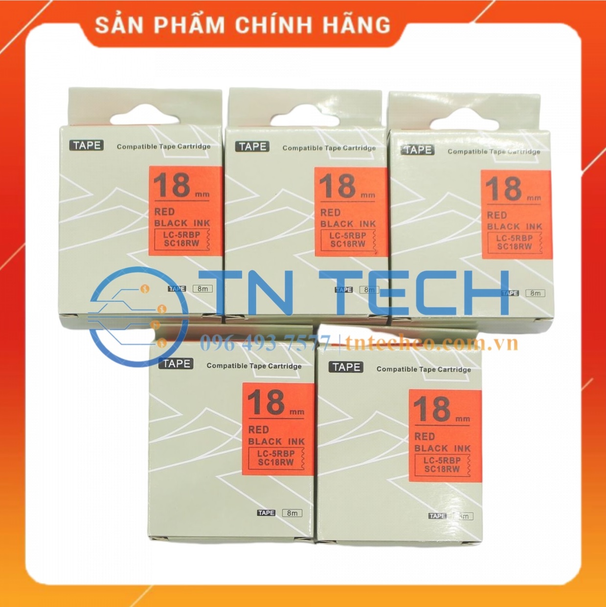 NHÃN IN TEPRA-EPSON LC-5RBP (SC18RW) – CHỮ ĐEN NỀN ĐỎ 18MM X 8M
