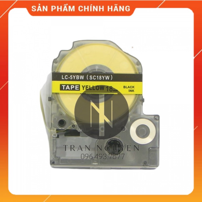 ✨Nhãn in Tepra SC18YW (LC-5YBW) - Chữ đen nền vàng 18mm x 8m - Hàng nhập khẩu