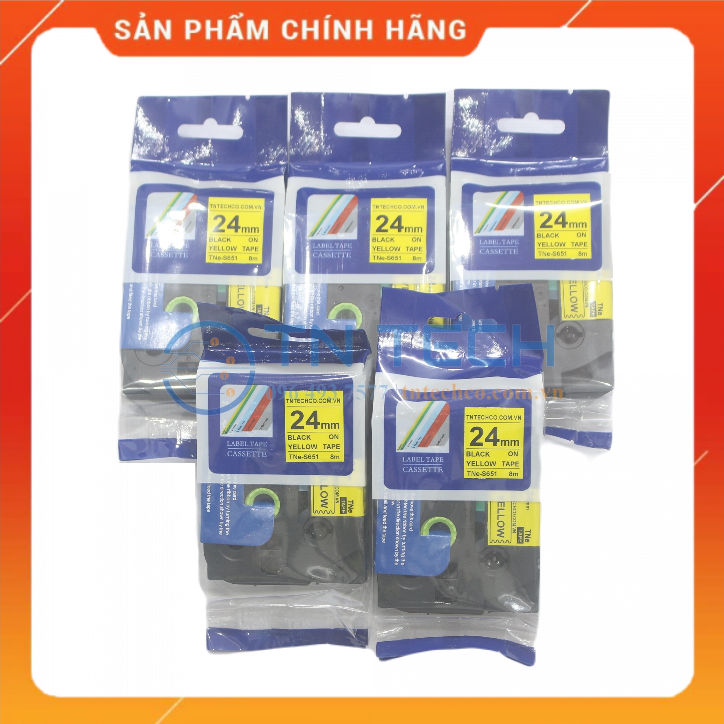 Nhãn in TZ2-451 Brother Nhãn in đa lớp sử dụng cho máy in nhãn Brother, tất cả trong 1, mực nằm bên trong, chống chịu dung môi, hóa chất, nước, dầu mỡ, nhiệt độ Mã