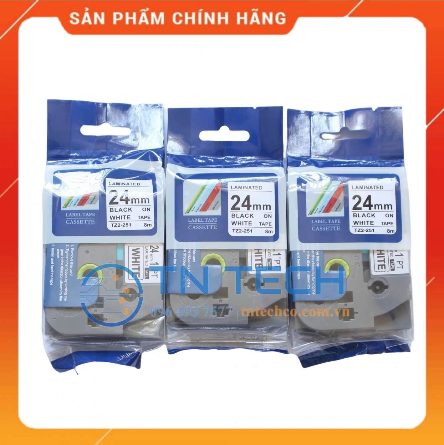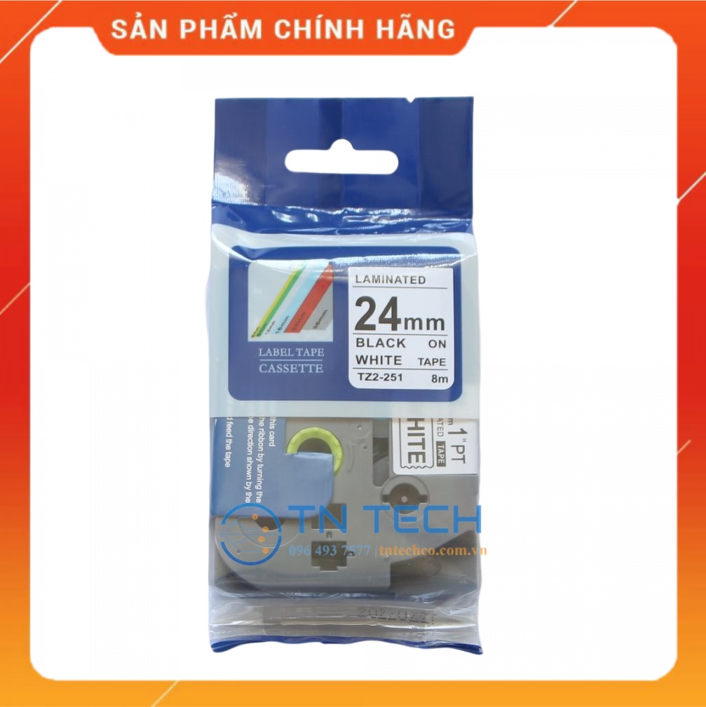 Nhãn in TZ2-451 Brother Nhãn in đa lớp sử dụng cho máy in nhãn Brother, tất cả trong 1, mực nằm bên trong, chống chịu dung môi, hóa chất, nước, dầu mỡ, nhiệt độ Mã