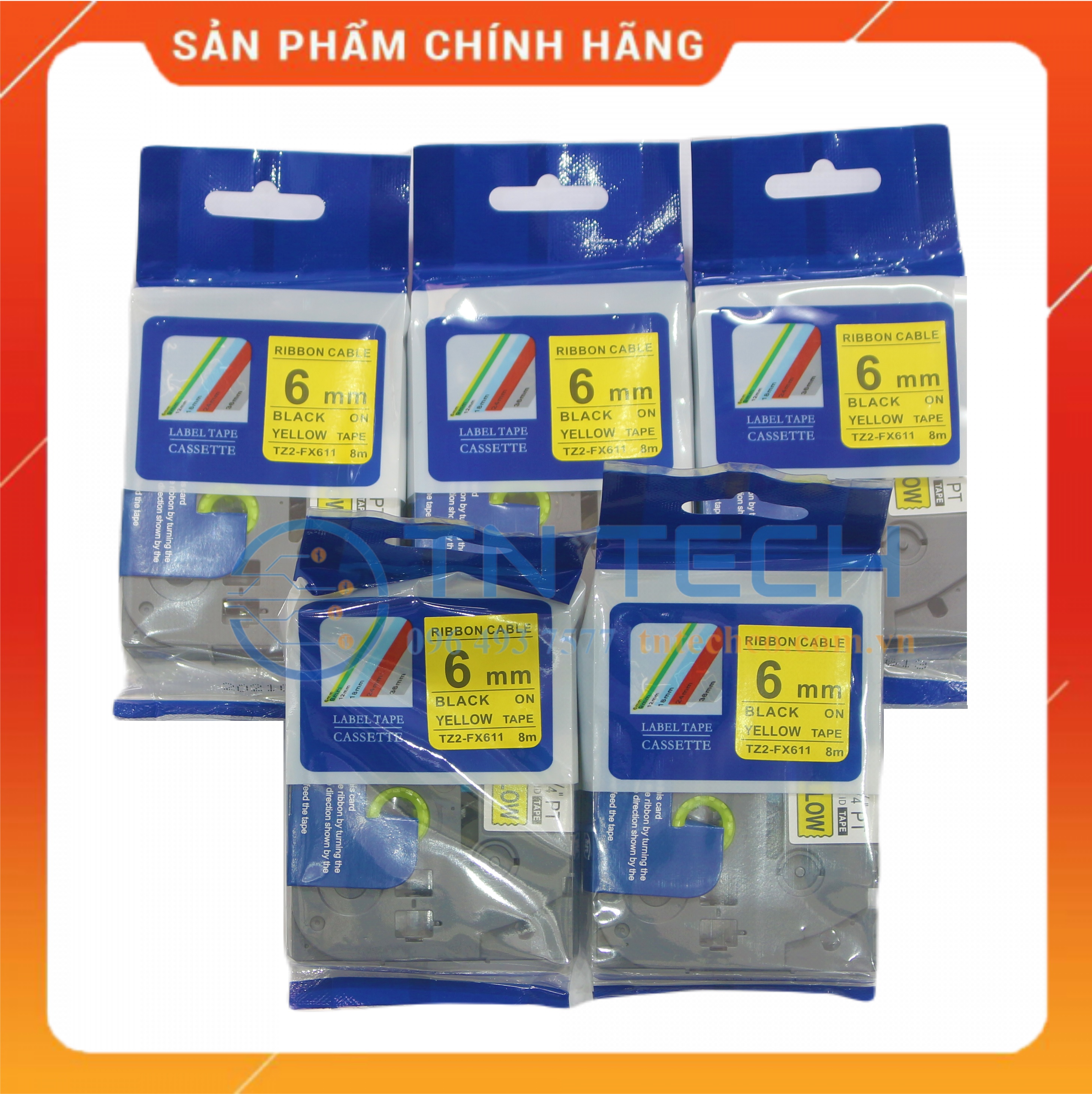 Nhãn in TNE-S611 Brother Nhãn in đa lớp sử dụng cho máy in nhãn Brother, tất cả trong 1, mực nằm bên trong, chống chịu dung môi, hóa chất, nước, dầu mỡ, nhiệt độ Mã