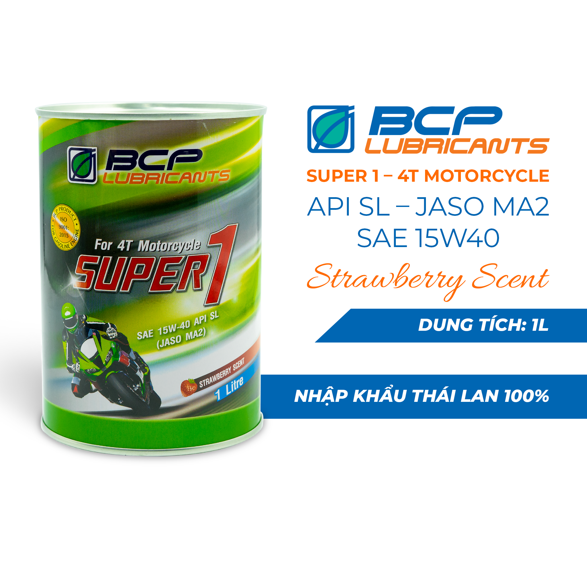Nhớt xe số BCP Super 1 - SAE 15W40 - API SL - JASO MA2 – chai 800 mL BCP Super 1 4T Motorcycle là sản phẩm dầu nhớt đa cấp tổng hợp chuyên dùng