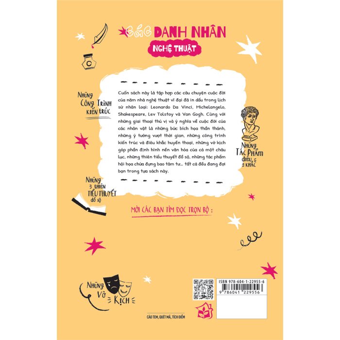 là cuốn sách tập hợp các câu chuyện cuộc đời của năm nhà nghệ thuật vĩ đại đã in dấu trong lịch sử nhân loại: Leonardo da Vinci, Michelangelo, Shakespeare, Lev Tolstoy và Van G Cùng với những giai thoại thú vị và ý nghĩa về cuộc đời của các nhân vật là những bức bích họa thần thánh, những ý tưởng phát minh khoa học vượt thời gian, những công trình kiến trúc và điêu khắc huyền thoại, những vở kịch góp phần định hình nền văn hóa của cả một châu lục, những thiên tiểu thuyết đồ sộ, những tác phẩm hội họa chứa đựng bao tâm tư… tất cả đều đang đợi bạn trong tựa sách này.