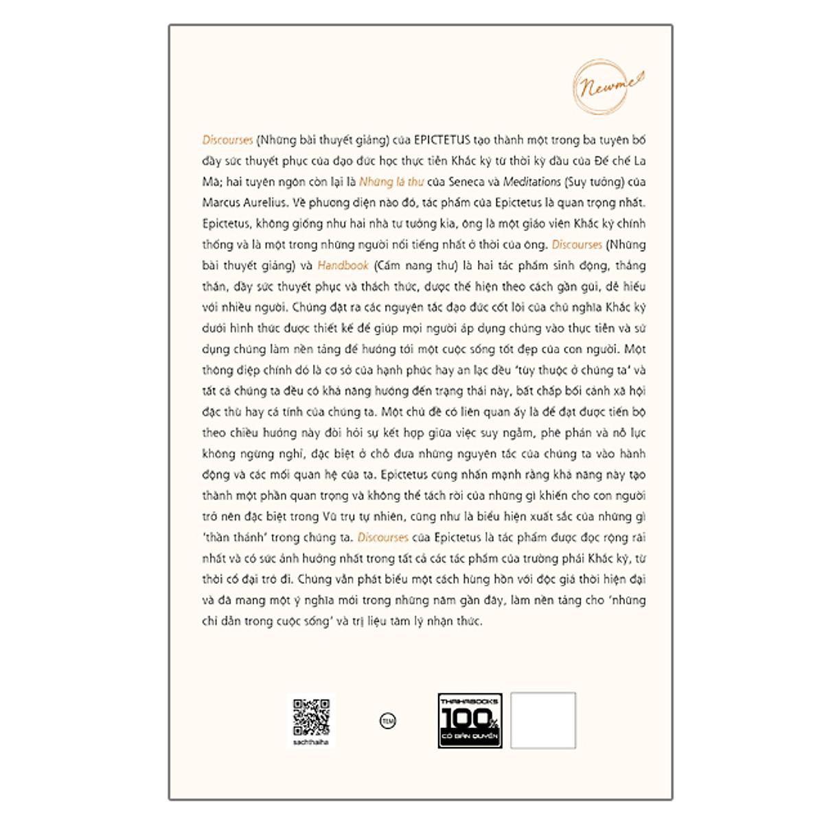 Discourses (Những bài thuyết giảng) của EPICTETUS tạo thành một trong ba tuyên bố đầy sức thuyết phục của đạo đức học thực tiễn Khắc kỷ từ thời kỳ đầu của Đế chế La Mã; hai tuyên ngôn còn lại là Những lá thư của Seneca và Meditations (Suy tưởng) của Marcus Aurelius. Về phương diện nào đó, tác phẩm của Epictetus là quan trọng nhất. Epictetus, không giống như hai nhà tư tưởng kia, ông là một giáo viên Khắc kỷ chính thống và là một trong những người nổi tiếng nhất ở thời của ông.