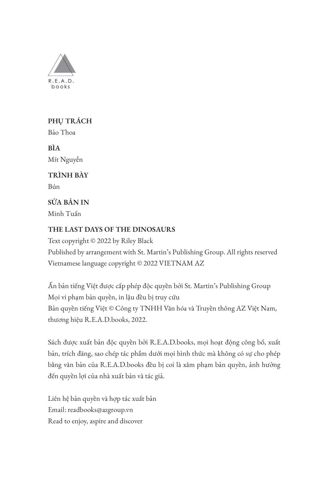 Ấy vậy mà thế giới như chúng ta biết ngày hôm nay lại chính là sự nảy nở tiếp sau thảm họa kéo dài, khi mà sự sống không chỉ quay trở lại mà còn được định hình lại bởi chính thảm họa đó. Dưới một góc độ rất chuẩn xác về khoa học nhưng cũng đầy nhân văn, tác giả Riley Black đã tiếp cận đại thảm họa khi xưa như một câu chuyện bi kịch nhưng giàu hy vọng về bản chất mạnh mẽ của sự sống trên hành tinh của chúng ta.