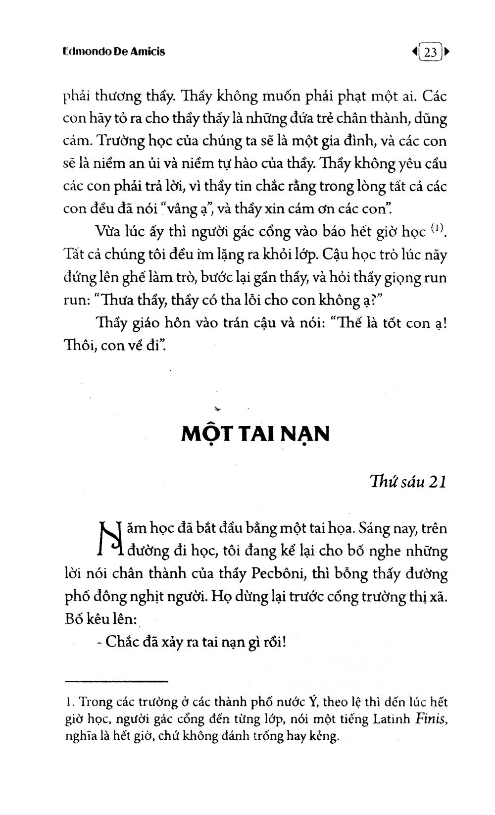 Edmondo De Amicis (1846–1908) là nhà văn người Ý. Chưa đến hai mươi tuổi, nhà văn người Ý ấy đã cầm súng chiến đấu cho độc lập và thống nhất đất nước, ngoài bốn mươi tuổi tiếp tục đấu tranh cho đến trọn đời vì công bằng xã hội. Cầm bút hơn bốn mươi năm, một nửa thời gian De Amicis chuyên viết du ký và phê bình NXB Văn Học, một nửa viết về các chủ đề chính trị và xã hội, tác phẩm của ông để lại khá nhiều và cũng gây được tiếng vang không ít. Một số tác phẩm tiêu biểu của ông: Tây Ban Nha (1873), Hà Lan (1874), Ma Rốc (1876), Trên đại dương… Trong đó thành công nhất phải kể đến hai tác phẩm Những người bạn dí dỏm và Những tấm lòng cao cả.