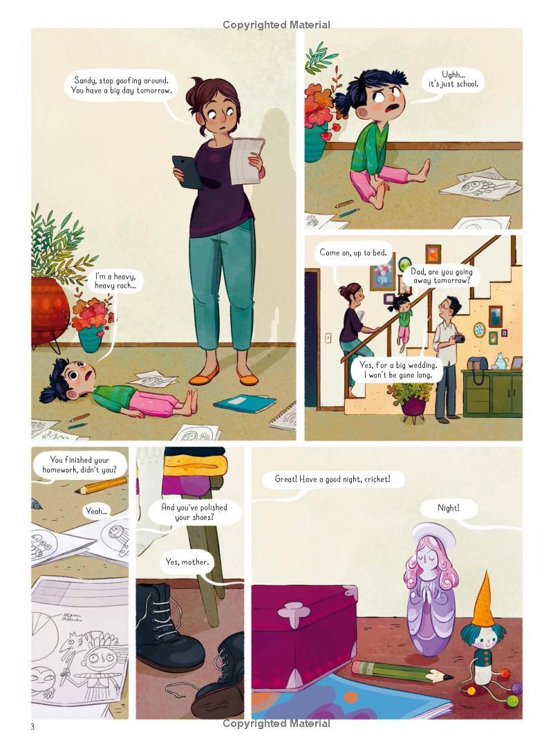 Every night, tiny stars appear out of the darkness in little Sandy's bedroom. She catches them and creates wonderful creatures to play with until she falls asleep, and in the morning brings them back to life in the whimsical drawings that cover her room.