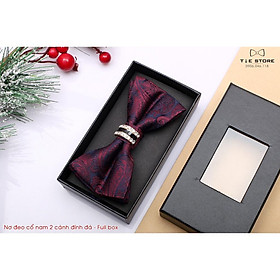 ✨Nơ đeo cổ nam Chú rể - Nơ bướm 2 cánh đính đá cao cấp Full box, Màu đỏ mận họa tiết retro Paislay