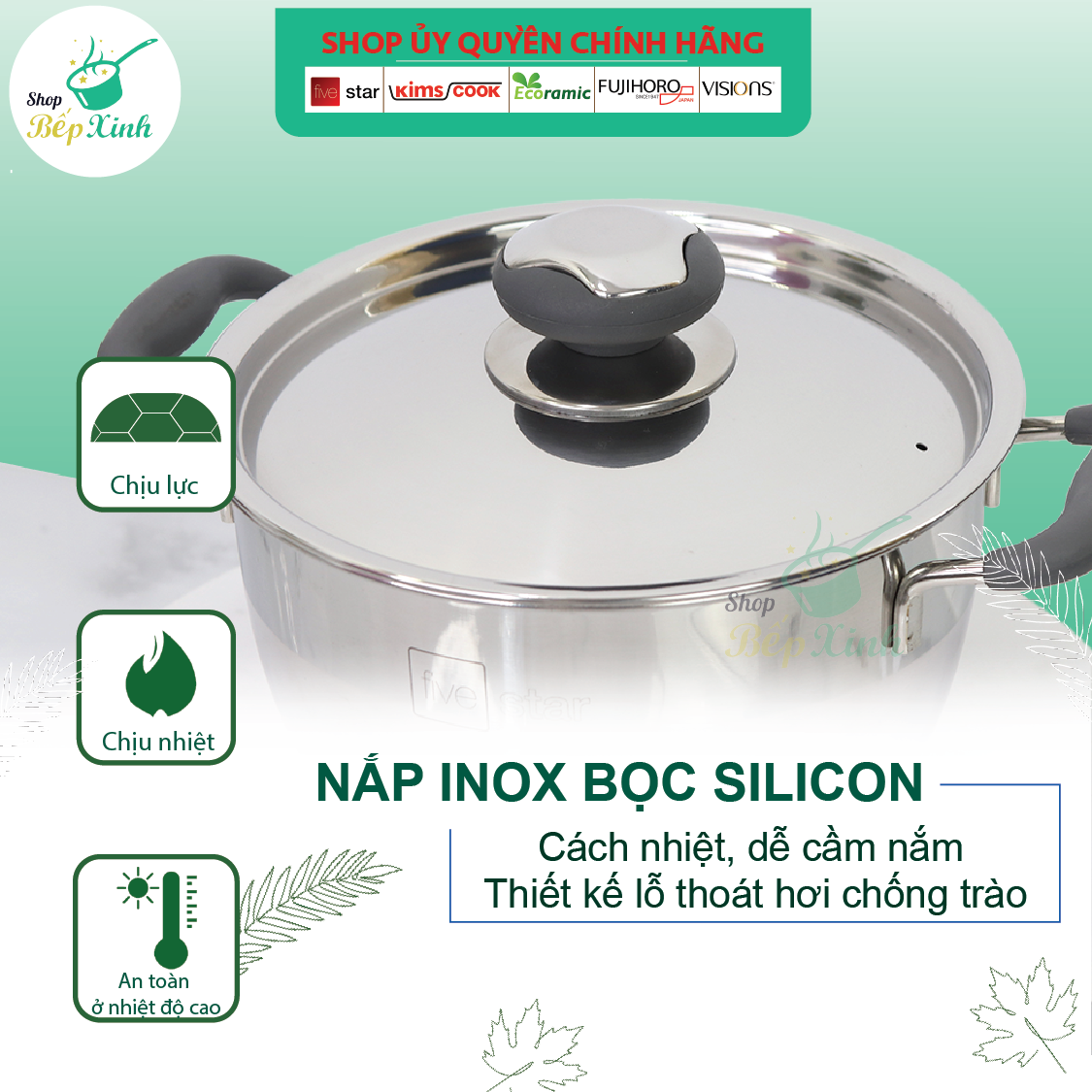 ✨Nồi 3 đáy inox 430 Thân Cool Fivestar Standard quai silicon chống nóng (16cm)