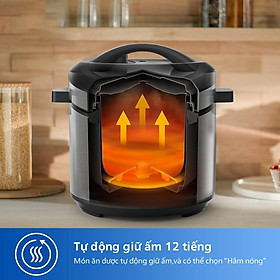 Chế độ giữ ấm 12 tiếng và hâm nóng tiện lợi, giữ cho món ngon luôn nóng hổi thơm ngon sẵn sàng cho gia đình thưởng thức.
