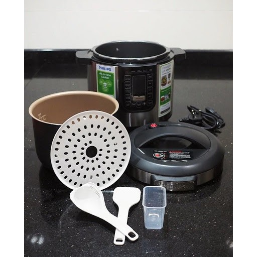 Nồi áp suất điện đa năng Philips HD2103 Chi tiết: Nhiều chức năng: nấu cơm, hầm thịt, hầm xương, đun nước... Nồi chống dính cao cấp dày 1,8mm, bền, dễ chùi rửa. Thiết bị an toàn