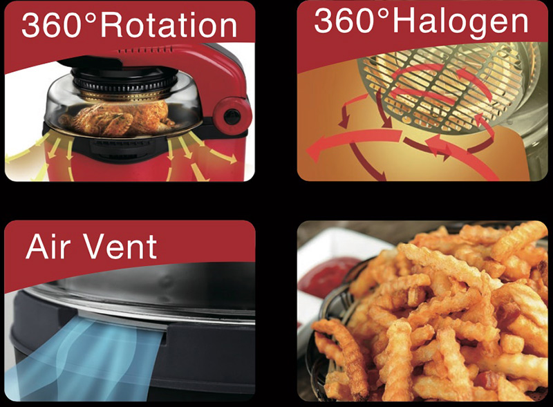 - Với công suất 1700w nhiệt được phân bố tối ưu với luồn khí nóng đối lưu nên thức ăn ko cần lật. Bề mặt vỏ inox sang trọng, tay cầm được chống nóng, thành