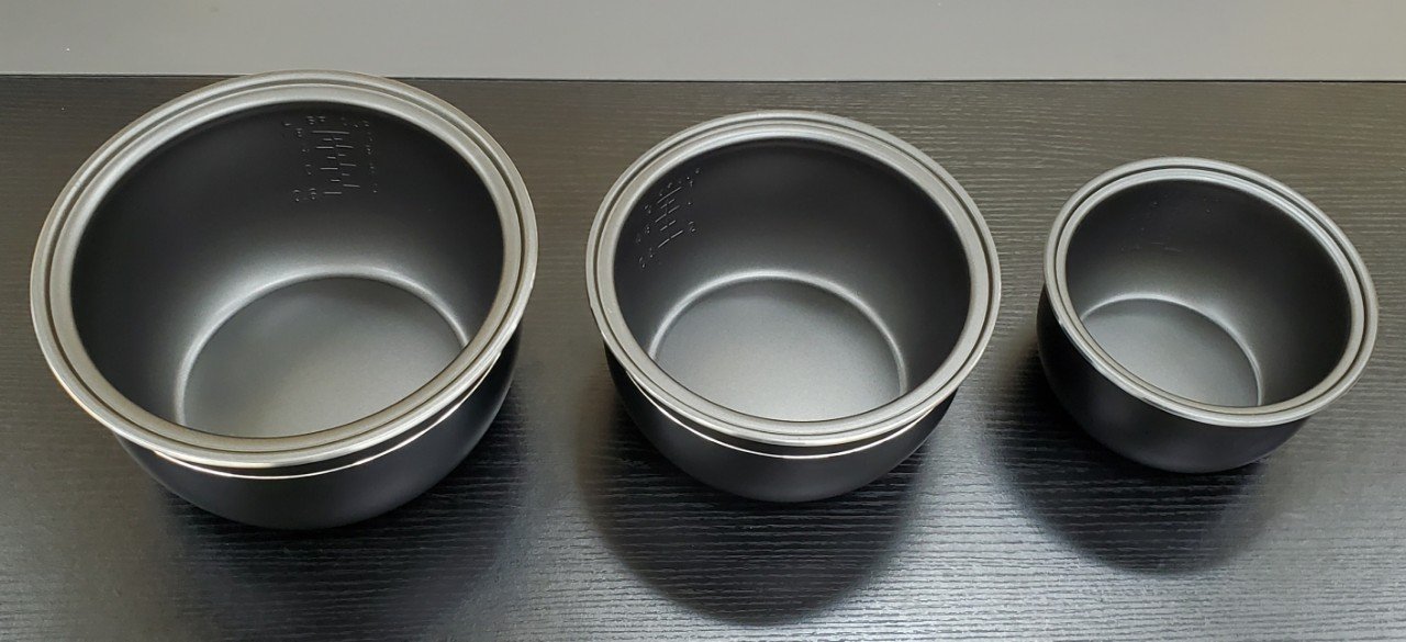 • » Lòng nồi bằng hợp kim nhôm phủ chống dính Whitford (USA), hạn chế dính cháy cơm, bền tốt, nấu ăn an toàn, tiện vệ sinh.
