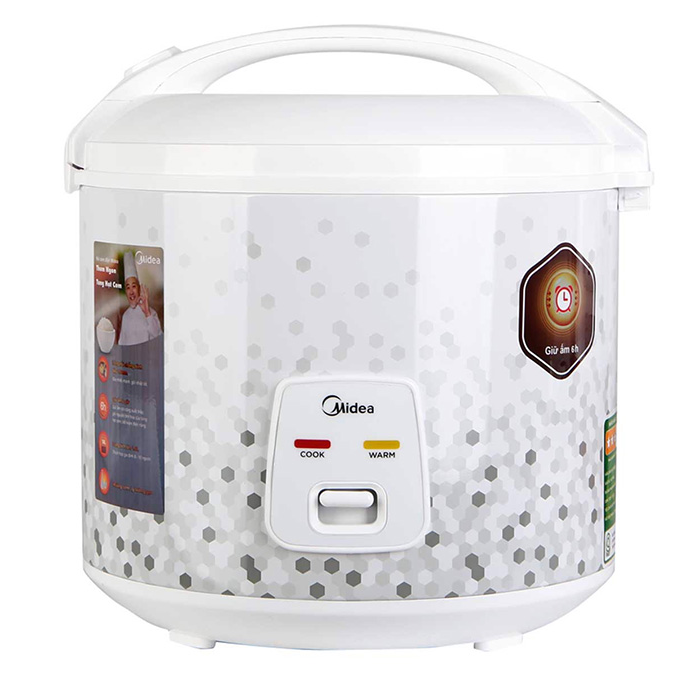 Midea MR-CM1821 được thiết kế đơn giản với một nút gạt chuyển từ chế độ hâm nóng sang chế độ nấu. Khi nấu thì bạn gạt công tắc xuống dưới đèn báo sẽ hiển thị chế độ nấu (Cook), khi cơm chín rơ le sẽ tự động nảy lên và đèn báo ở chế độ warm (giữ ấm).