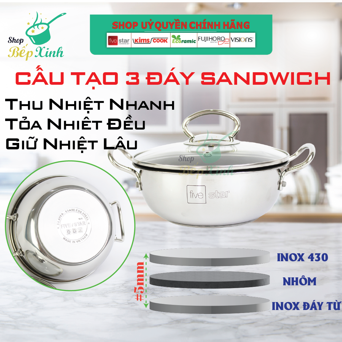 ✨Nồi inox 3 Đáy Chống Dính 20cm Fivestar ( tặng 1 sạn dừa),bếp từ , gas, hồng ngoại