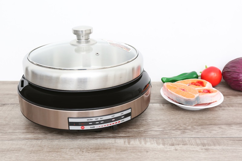 - Nồi lẩu đa năng Dung tích nồi lớn (4 lít) đủ nhu cầu nấu lẩu cho cả gia đình trong những buổi liên hoan, họp mặt. Không chỉ nấu lẩu, nồi còn có thể dùng nướng đồ với một khay nướng phủ chống dính Whitford (USA) được tích hợp sẵn, cho gia đình một bữa tiệc ấm cúng.