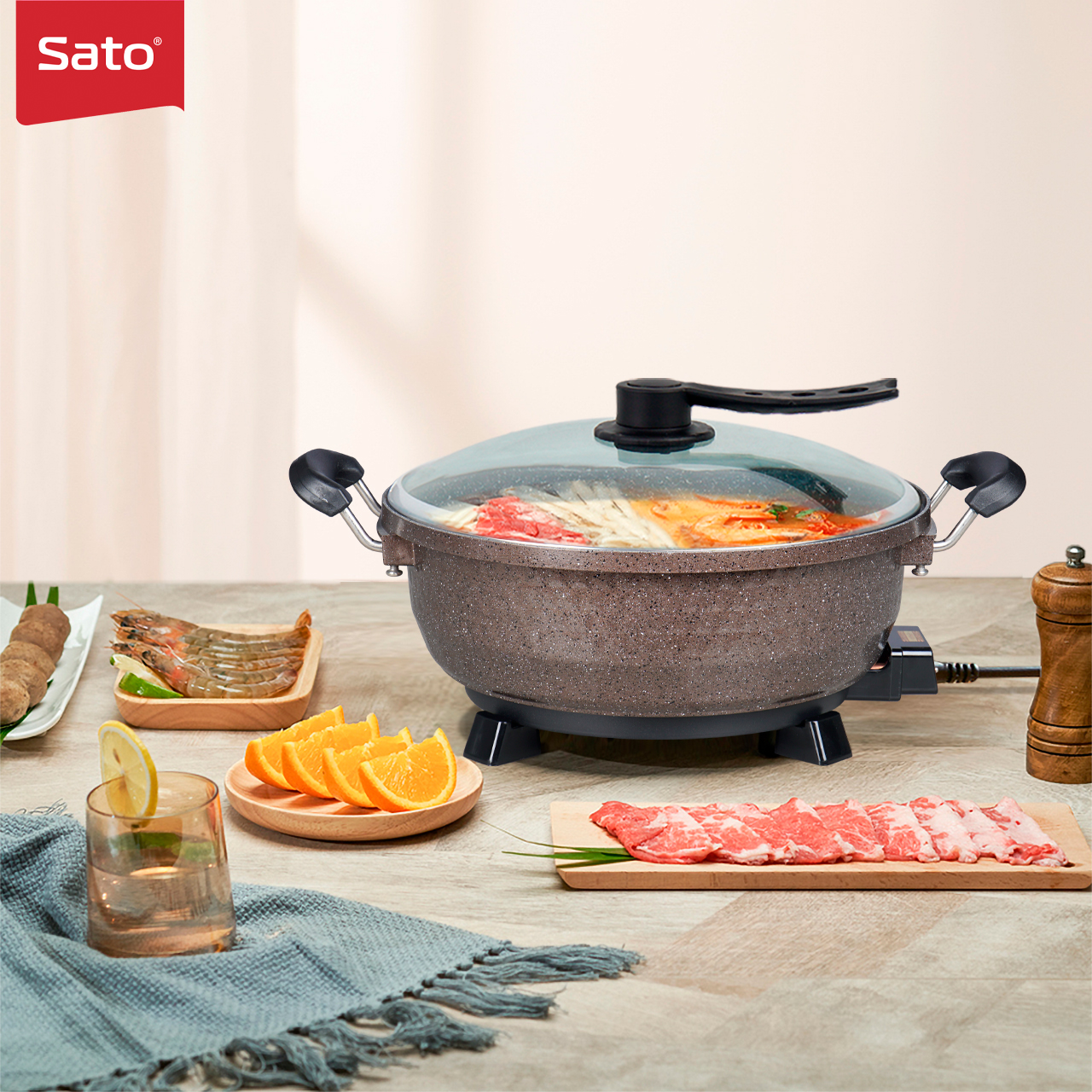 Nồi lẩu điện đa năng SATO ST-351HP: trợ thủ đắc lực cho gia đình bạn. Ăn lẩu tiện dụng, thời gian chuẩn bị nhanh chóng. Dung tích 3.5 L phù hợp với nhu cầu sử