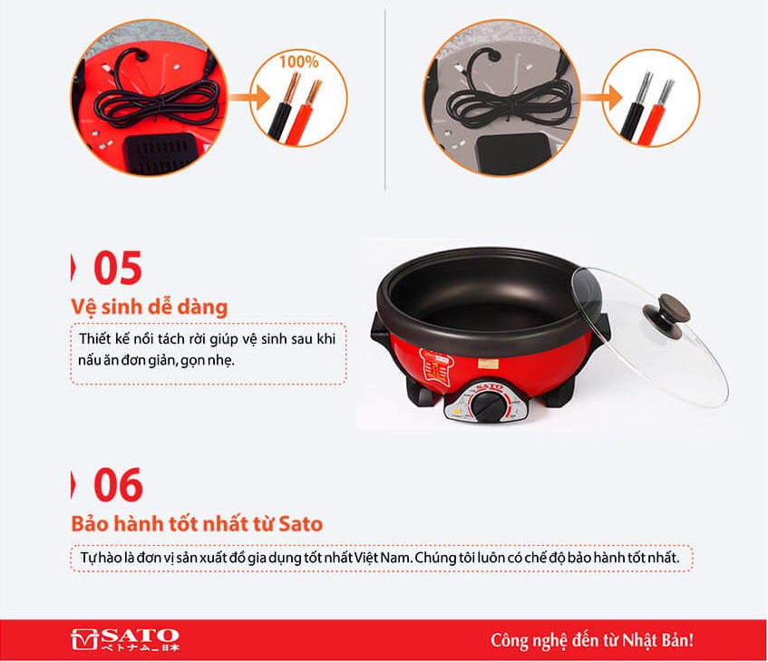- Nồi Lẩu Điện SATO ST-351HP (3.5L) - Đỏ dùng để nấu lẩu, chiên, xào, rim và nấu canh, giúp bạn bổ sung nhiều món ngon vào thực đơn của gia đình. - Lòng nồi được làm từ nhôm