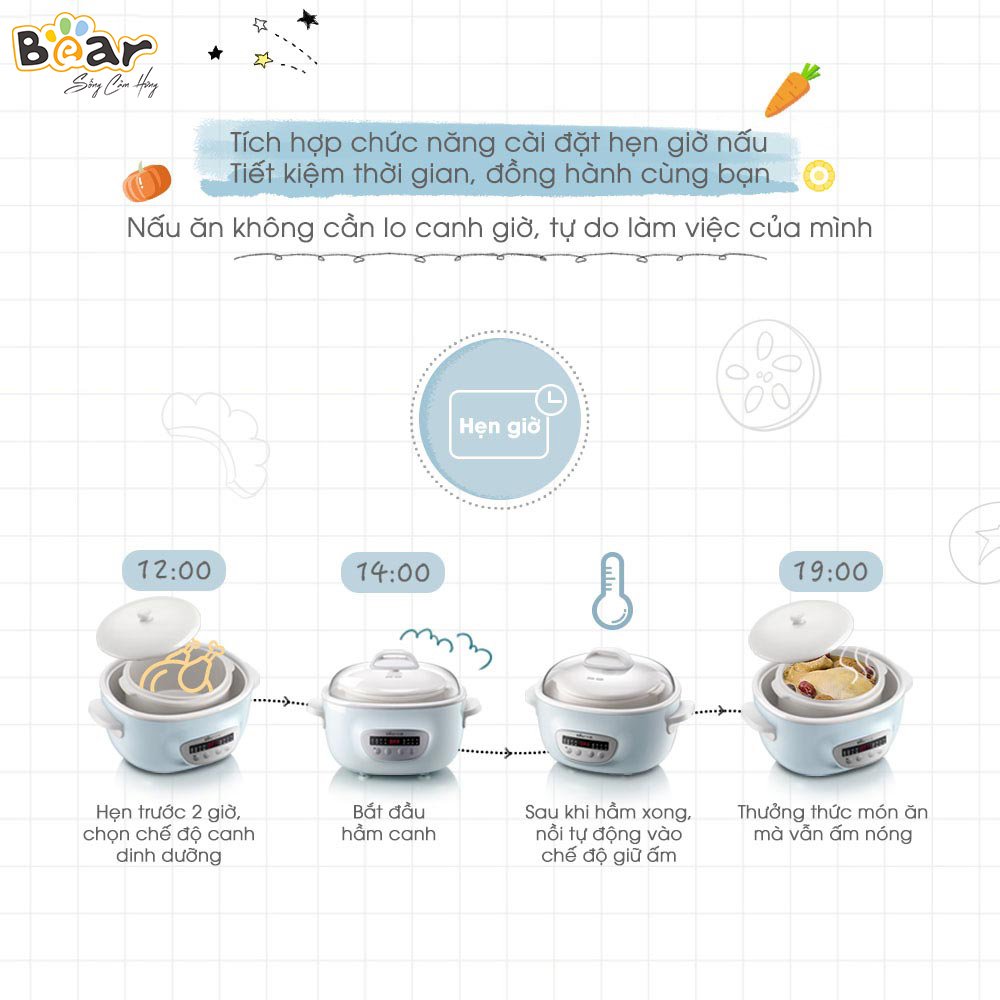 Nồi Nấu Chậm 1,6L Bear Chính Hãng Đa Năng Nấu Cháo, Chưng Yến Bản Quốc Tế Bảo Hành 18 Tháng - SUBE002 Lý do nên mua Nồi Nấu Cháo Chậm 1,6L Bear SUBE002 ️Dễ sử