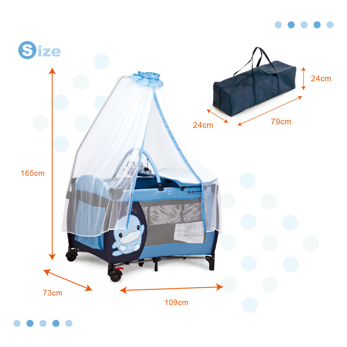 Nôi 2 tầng: 1 tầng bé ngủ, 1 tầng bé chơi Tính năng COMPACT MODE: - Sản phẩm được thiết kế bởi các khớp nối thông minh, tháo lắp đơn giản bằng các chốt bấm,
