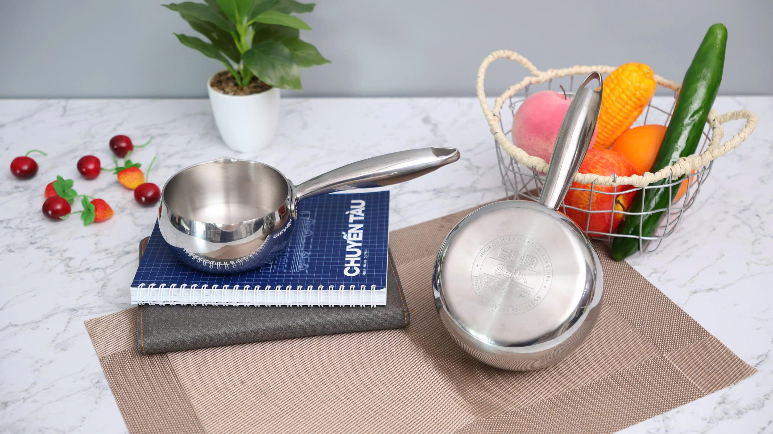 Quánh inox hữu dụng tuyệt đối cho mấy mẹ có con nhỏ đây ạ, đủ để các mẹ làm gáo múc nước, múc canh, nấu bột, nấu cháo...