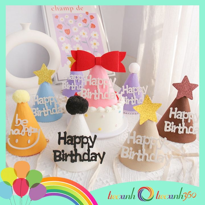 Nón chóp sinh nhật bằng vải nỉ Chất liệu: vải nỉ. Kiểu dáng: nón chópKích thước: 18 x 12 cm.Màu sắc: tùy chọn.Cài thành nón chóp và tùy chỉnh dây để đội vừa đầu và khuôn mặt. Nón sinh nhật là ph...