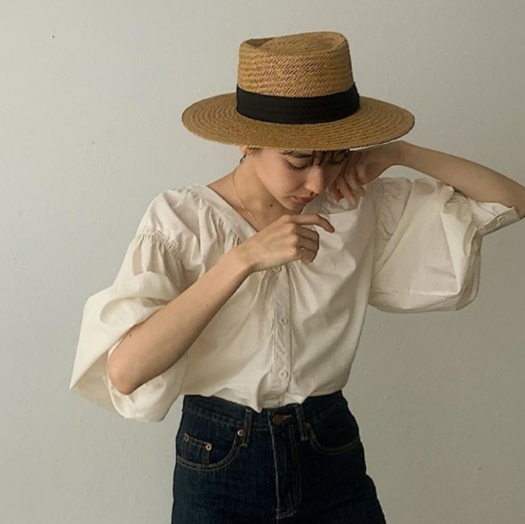 Mũ cói rơm vành phẳng nữ mùa hè phiên bản Hàn Quốc chống nắng UV cho kỳ nghỉ Nón đi biển Paris thời trang hàng đầu Pháp Chất liệu cói