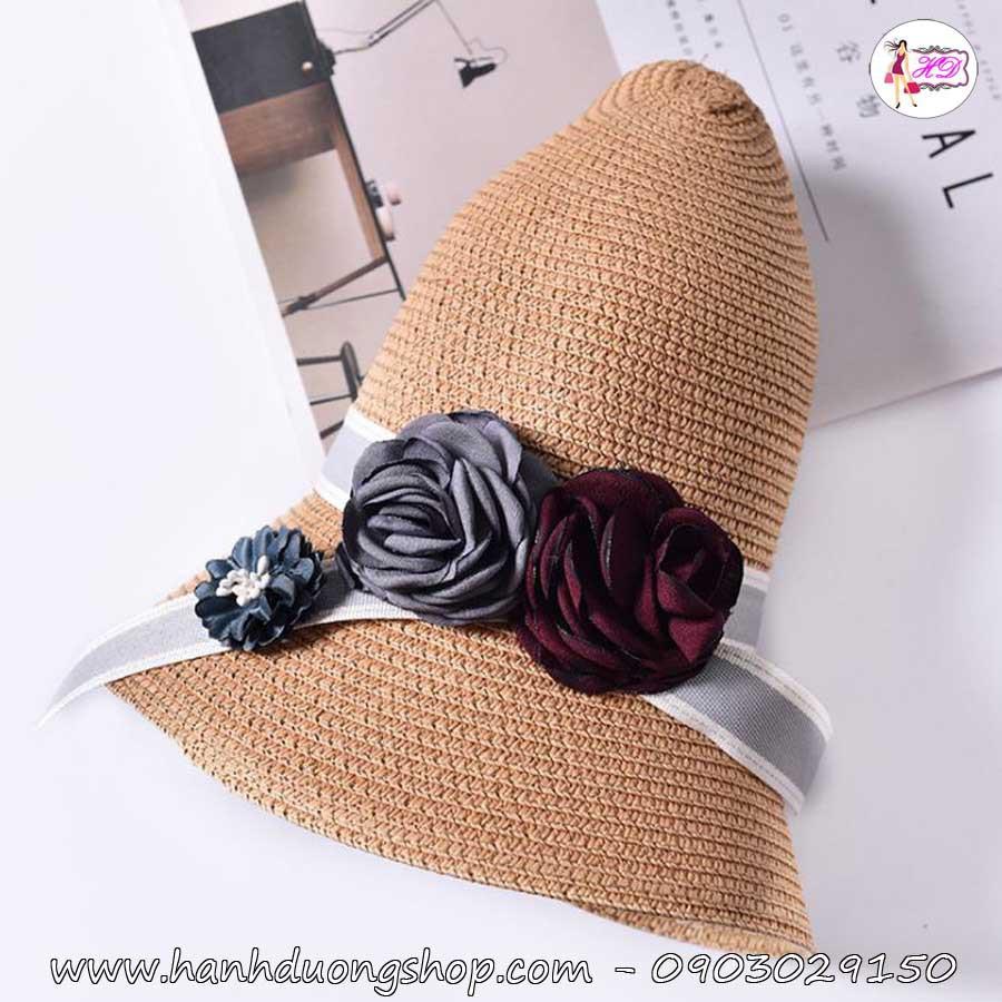 Mũ vải rộng vành đi biển nữ chống nắng tốt kết nơ hoa đẹp - Hạnh Dương Shop