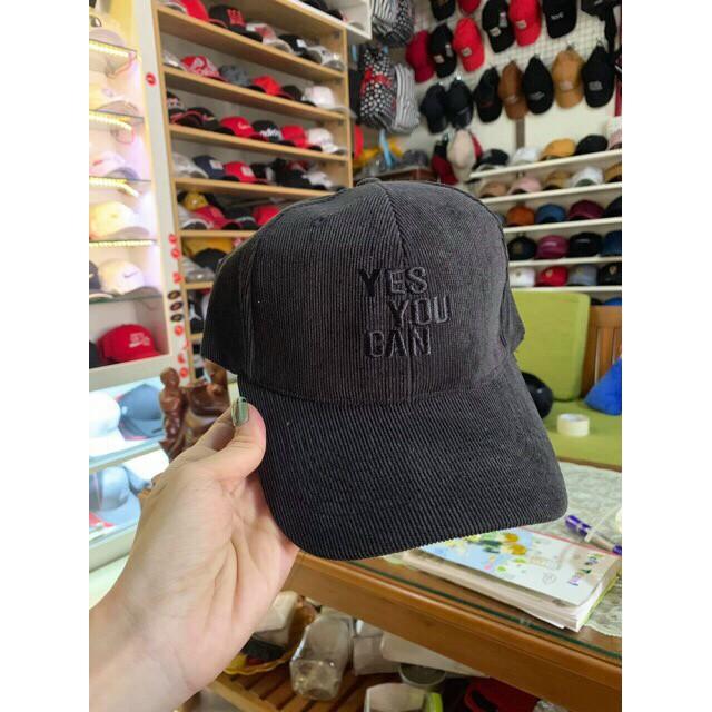 Nón kết vải nhung Yes You Can được may từ chất liệu vải nhung mềm mượt, tạo cảm giác thoải mái dễ chịu khi sử dụng. Các đường may chắc chắn tạo sự bền chắc