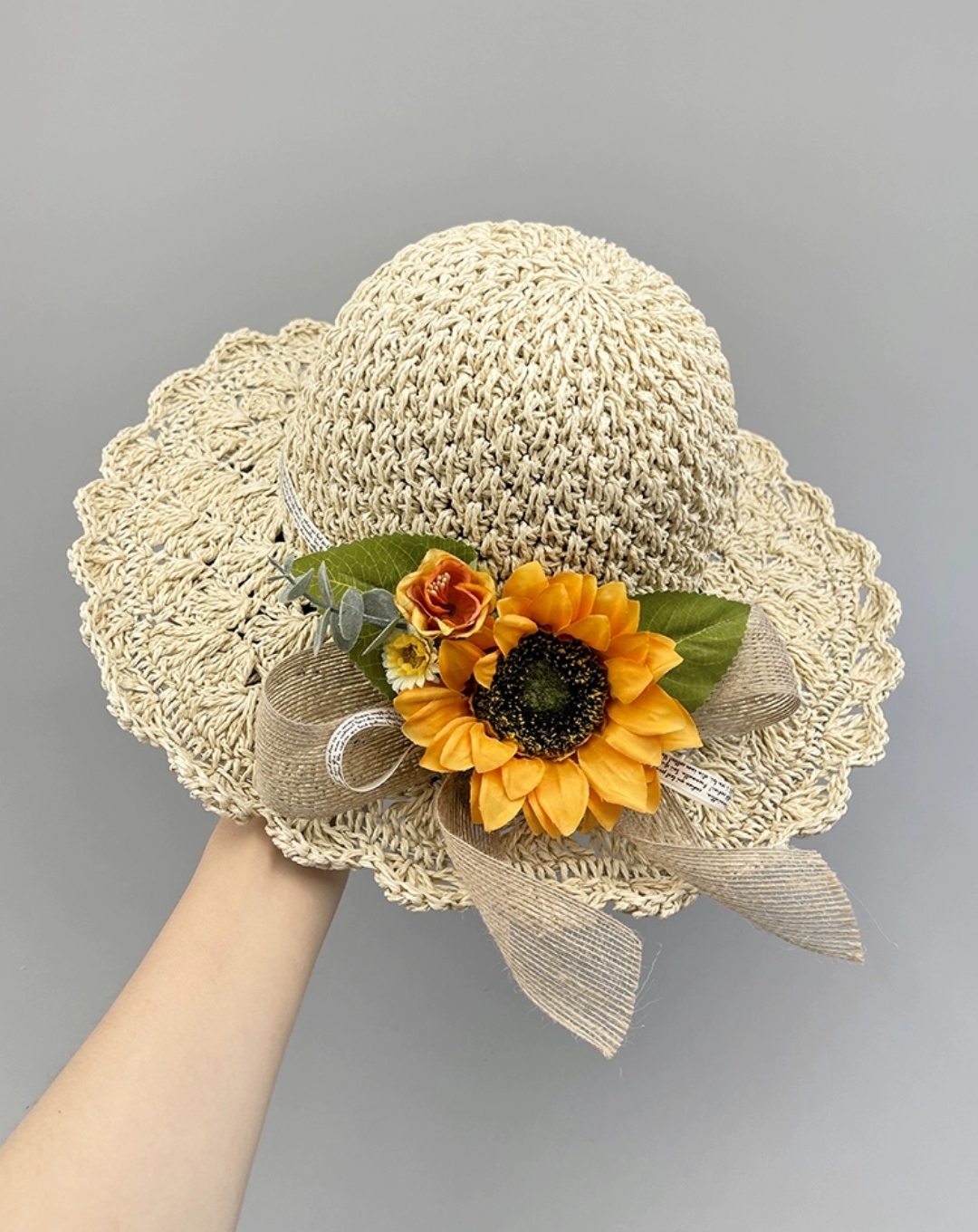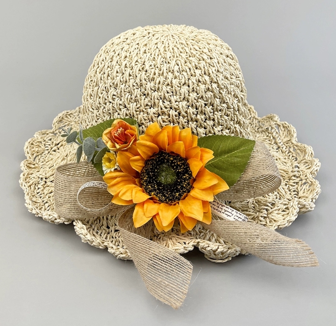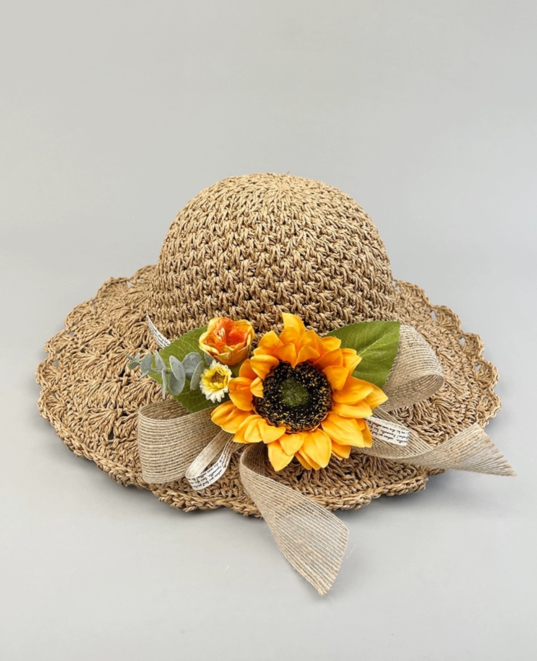 Mũ rộng vành nón đi biển chống nắng du lịch dã ngoại gấp gọn thoáng mát gắn hoa vàng xinh thời trang Hàn Quốc