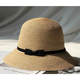 Nón vành nhỏ fedora chất liệu cói mũ rộng vành đi biển phối nơ đai đen thời trang Hàn Quốc Chất liệu cói thoáng mát Kích thước vành rộng 5cm Chất liệu cói thoáng mát