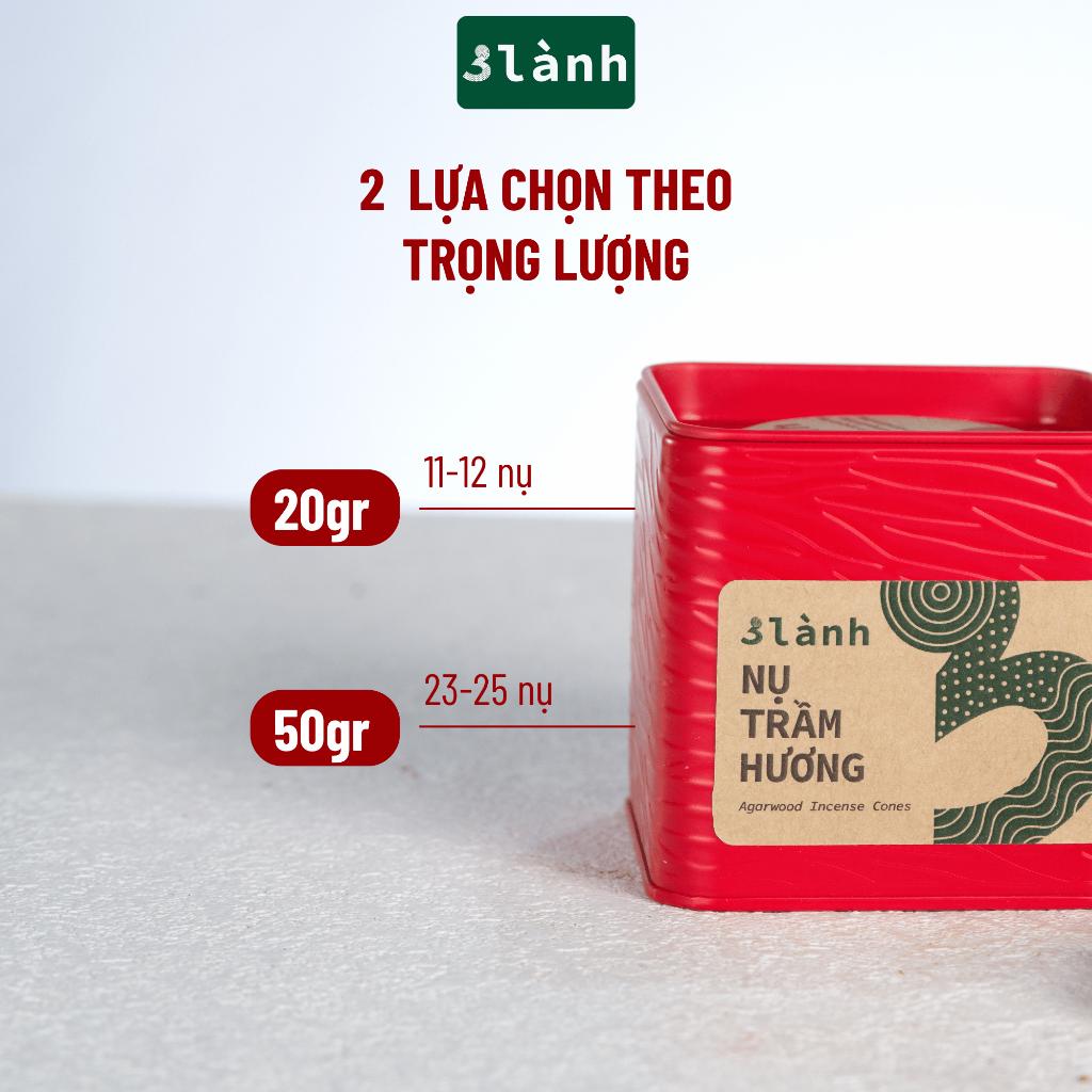 Mua tại TiktokThông tin sản phẩm Nụ Trầm Hương Trầm Kiến Sạch Tự Nhiên Không Hóa Chất thương hiệu 3 Lành Xuất xứ nụ trầm hương: Pleiku, Việt Nam Thành phần nụ trầm kiến: được làm từ trầm kiến tự nhiên, mặt cắt trầm có lổ kiến, vân nhựa trầm. Mùi ấm, sâu và sạch. Đóng gói: Hộp nhôm đỏ sang trọng giữ kín sản phẩm và có thể làm quà tặng Thời gian sử dụng: 30-35 phút / nụ Mùi hương trầm thơm ngọt ấm, tinh thần thư giãn, sảng khoái. Thời gian lưu hương: 2-3 tiếng Phân loại theo trọng lượng hộp: 20gr / hộp: ~ 10-11 nụ 50gr / hộp: ~ 21-24 nụ 100gr / hộp: ~ 49-52 nụ (2 hộp 50gr) Công dụng Nụ Trầm Hương Trầm Kiến Sạch Tự Nhiên Không Hóa Chất thương hiệu 3 Lành Dùng trong nhà và thờ cúng: