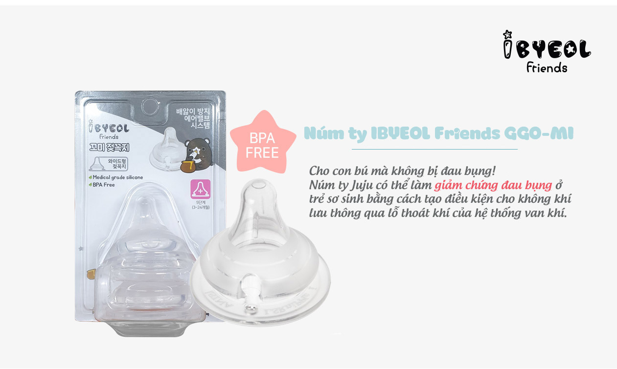 Núm ti cho bé IBYEOL Friends Ggo-Mi 5 giai đoạn cho bé sơ sinh - 24 tháng (chính hãng Hàn Quốc) IBYEOL Friends - Một thương hiệu đồ trẻ em hứa hẹn chất lượng tốt,