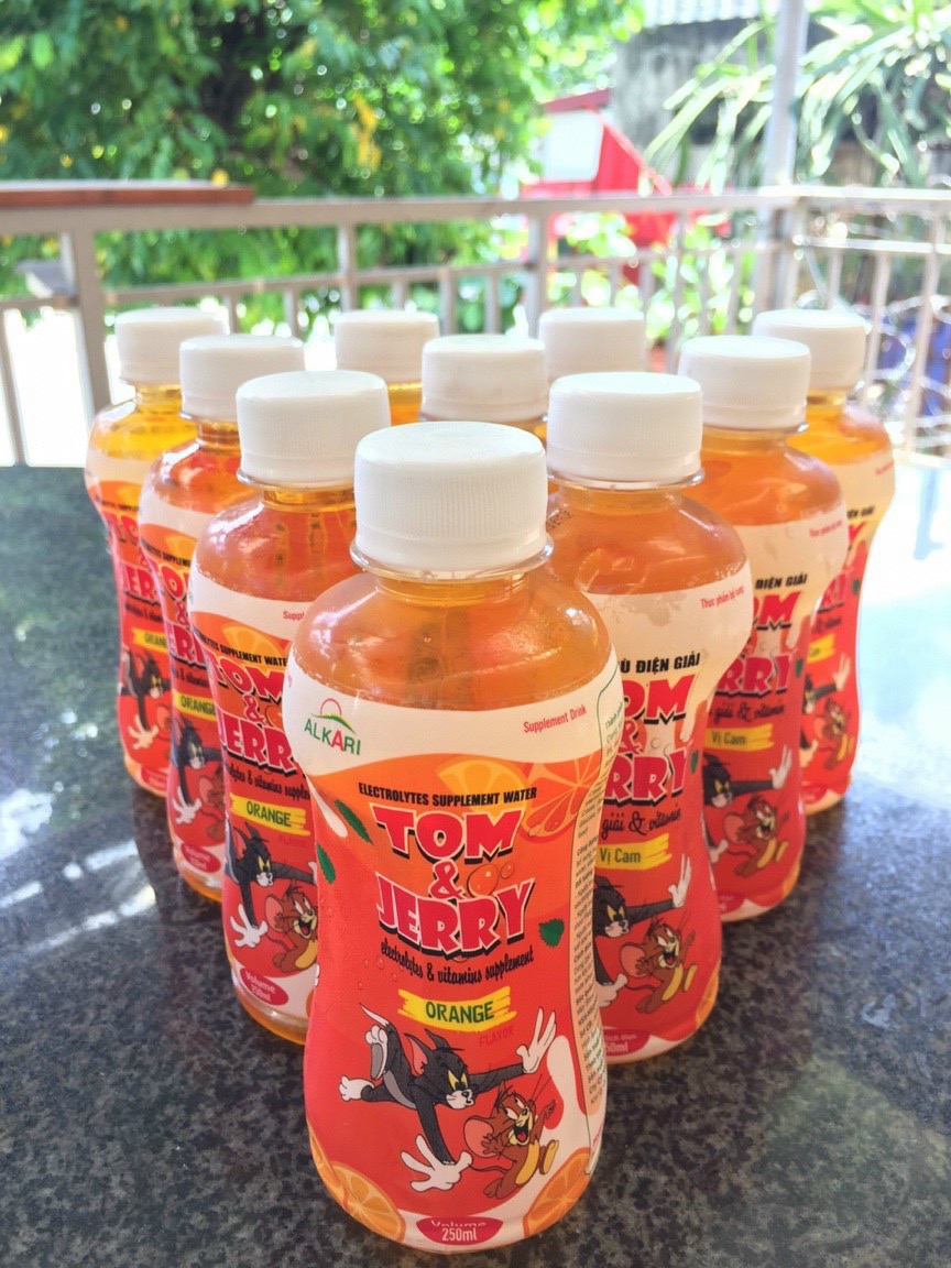 TOM & JERRY  - NƯỚC GIẢI KHÁT BÙ ĐIỆN GIẢI, TĂNG ĐỀ KHÁNG. SẢN XUẤT THEO TIÊU CHUẨN QUỐC TẾ, NHÀ MÁY HÀNG ĐẦU VIỆT NAM CÔNG NGHỆ NHẬP KHẨU TỪ NHẬT BẢN.  Để đáp ứng nhu cầu rộng lớn của thị trường, Công ty Việt Nhật Alkari cần tuyển đối tác đại lý/ sỉ Nước bù điện giải Tom &Jerry tại Hà Nội, Hải Phòng, Đà Nẵng, Thành Phố Hồ Chí Minh và các tỉnh thành trên cả nước. Hợp tác cùng chúng tôi bạn được gì ?  Sản phẩm chất lượng cao,quy trình sản xuất đạt tiêu chuẩn quốc tế ISO 22000:2018 và ISO-13485:2016. Hàng thiết yếu chống dịch ai ai cũng cần (Giải khát, dự phòng ốm sốt, mệt mỏi, sốt sau tiêm vaccine, nắng nóng, lao động, học tập căng thẳng, ra mồ hôi...) Giao hàng nhanh nhất, giá tốt nhất, công suất nhà máy lớn Hỗ trợ tư vấn, chốt đơn, chăm sóc sau bán hàng Phiếu kiểm nghiệm kèm theo và date xa Sản phẩm thơm ngon, dễ bán, uy tín chất lượng quốc tế.    TOM & JERRY NƯỚC BÙ ĐIỆN GIẢI CHẤT LƯỢNG SỐ 1 Quy cách: Thùng 24 chai, chai 250ml.