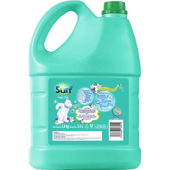 - Nhờ có hương nước xả vải mới cùng hệ bọt làm sạch thông minh NƯỚC GIẶT SURF HƯƠNG SƯƠNG MAI DIỤ MÁT 3.6KG - LẤY LẠI TƯƠI MỚI CHO ÁO QUẦN Giặt giũ dễ dàng lại càng thêm sướng với nước giặt Surf sương mai dịu mát. Nước giặt sở hữu công ngHệ bọt làm sạch thông minh MỚI, giúp thấm sâu vào từng sợi vải, giặt sạch nhanh và bung hương cỏ hoa dễ chịu. Thêm tiện lợi hơn với chai đựng chắc chắn. ƯU ĐIỂM NỔI BẬT: