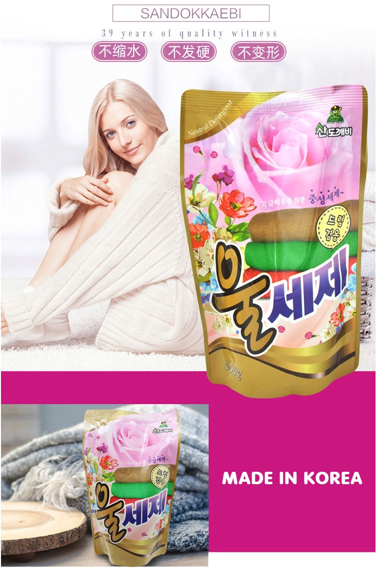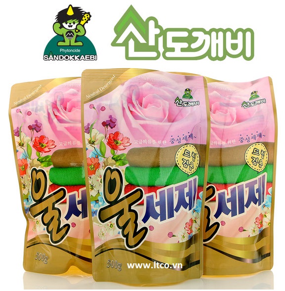 Nước giặt vải Len, vải Dạ mùi hương nước hoa Sandokkaebi túi 500g nhập khẩu Hàn Quốc
