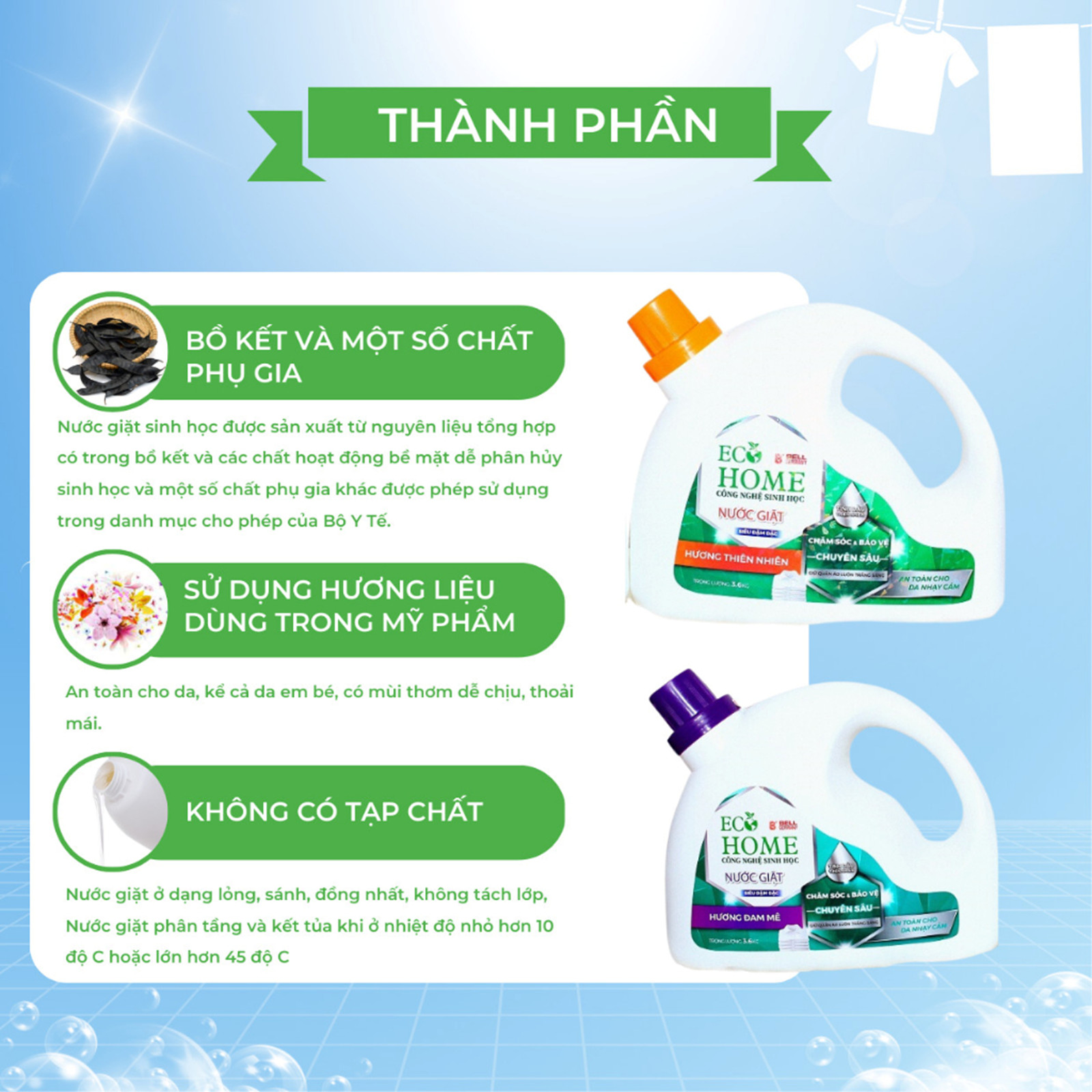Nước giặt sinh học được chiết xuất từ thành phần nguyên liệu thiên nhiên như: chanh tươi, bồ hòn, trầu không,… thay thế các loại nước giặt độc hại, không tốt cho sức khỏe. Các sản phẩm nước giặt sinh học vẫn đảm bảo hiệu quả giặt giũ, tăng độ bền cho quần áo, an toàn với làn da người sử dụng.