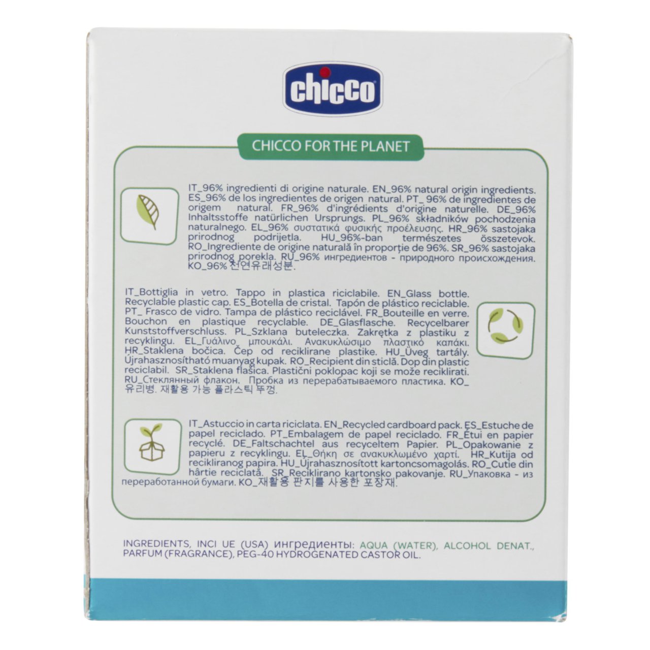 Không làm khô da: Công thức nước hoa Chicco với Grycerin thực vật giúp tăng cường độ ẩm, ức chế sự phát triển của vi khuẩn gây ra mùi khó chịu trên da Bé không làm ảnh hưởng đến độ cân bằng pH của da. Vì vậy có thể sử dụng để thoa trực tiếp lên cơ thế Bé.