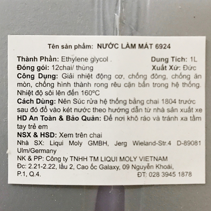 - Nước Làm Mát Động Cơ Xe Loại Màu Đỏ Cao Cấp Liqui Moly Coolant 6924 sử dụng cho tất cả các hệ thống làm mát và động cơ, đặc biệt là động cơ hoạt
