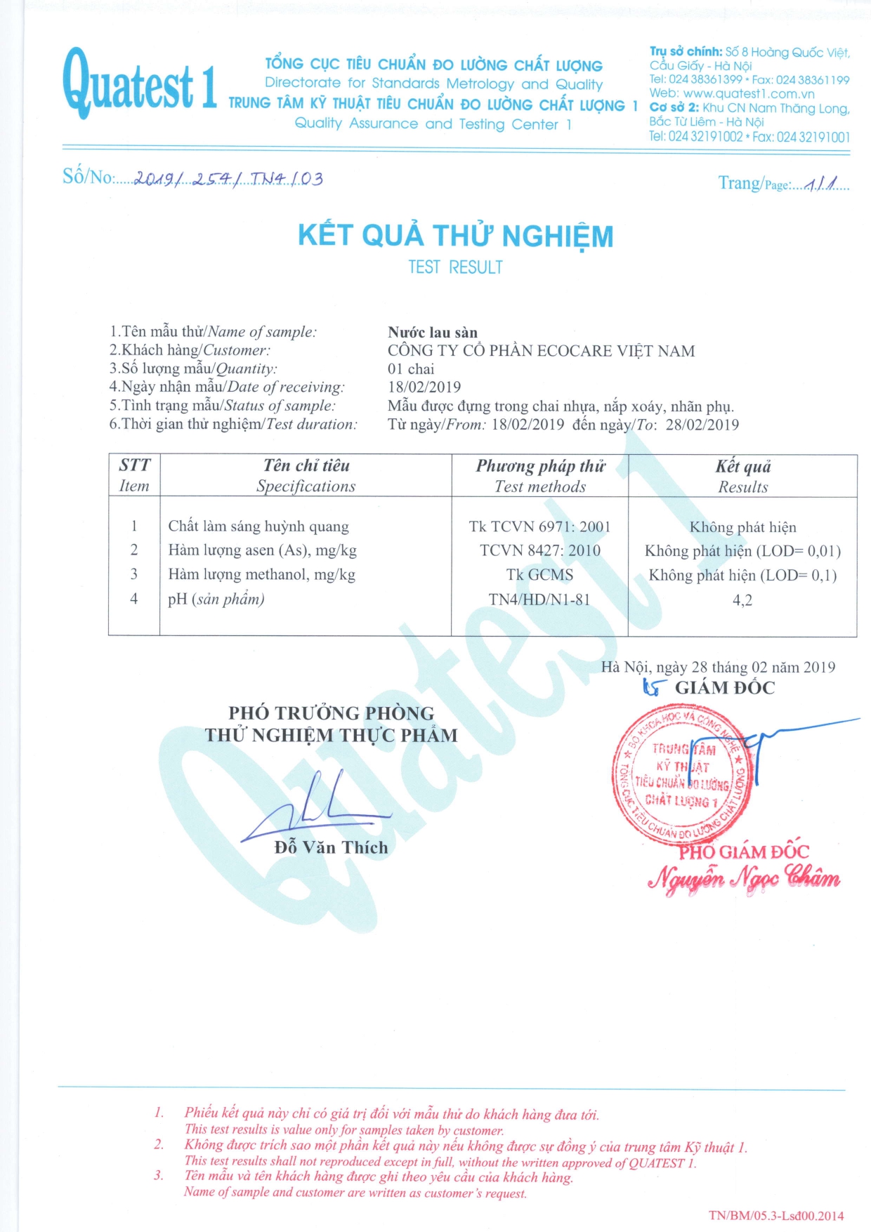 Công bố TCCS: Sản phẩm có giấy chứng nhận của cơ quan kiểm định Intertek thuộc Vương Quốc Anh, giấy chứng nhận Trung tâm Kỹ thuật Tiêu chuẩn Đo lường Chất lượng 1 (QUATEST 1)