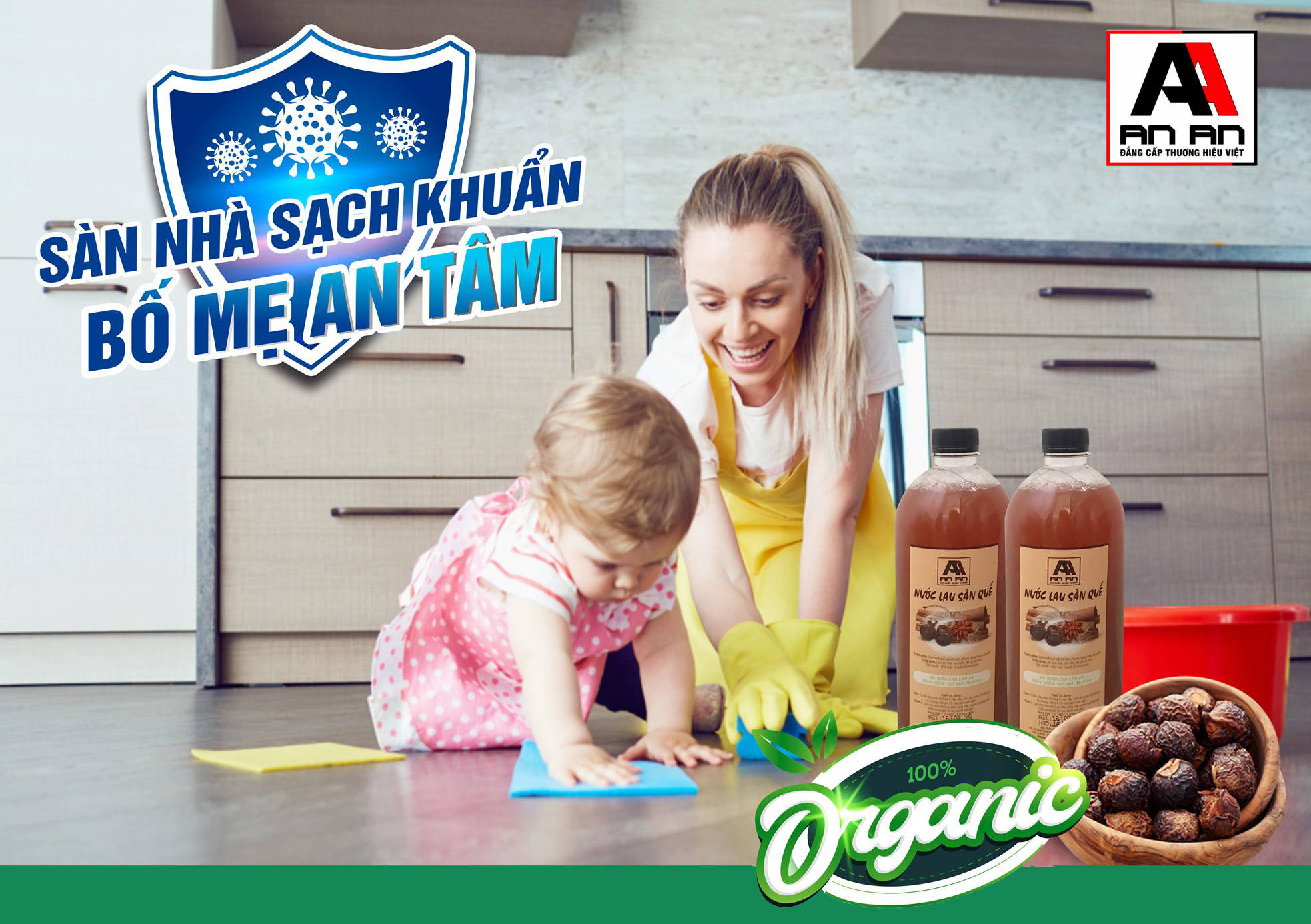 Nước lau nhà An An hữu cơ với tinh chất nước lau sàn quế, lau sàn đuổi côn trùng , dùng được cho cả lau bếp, lau kính, an toàn cho cả bà bâu hay