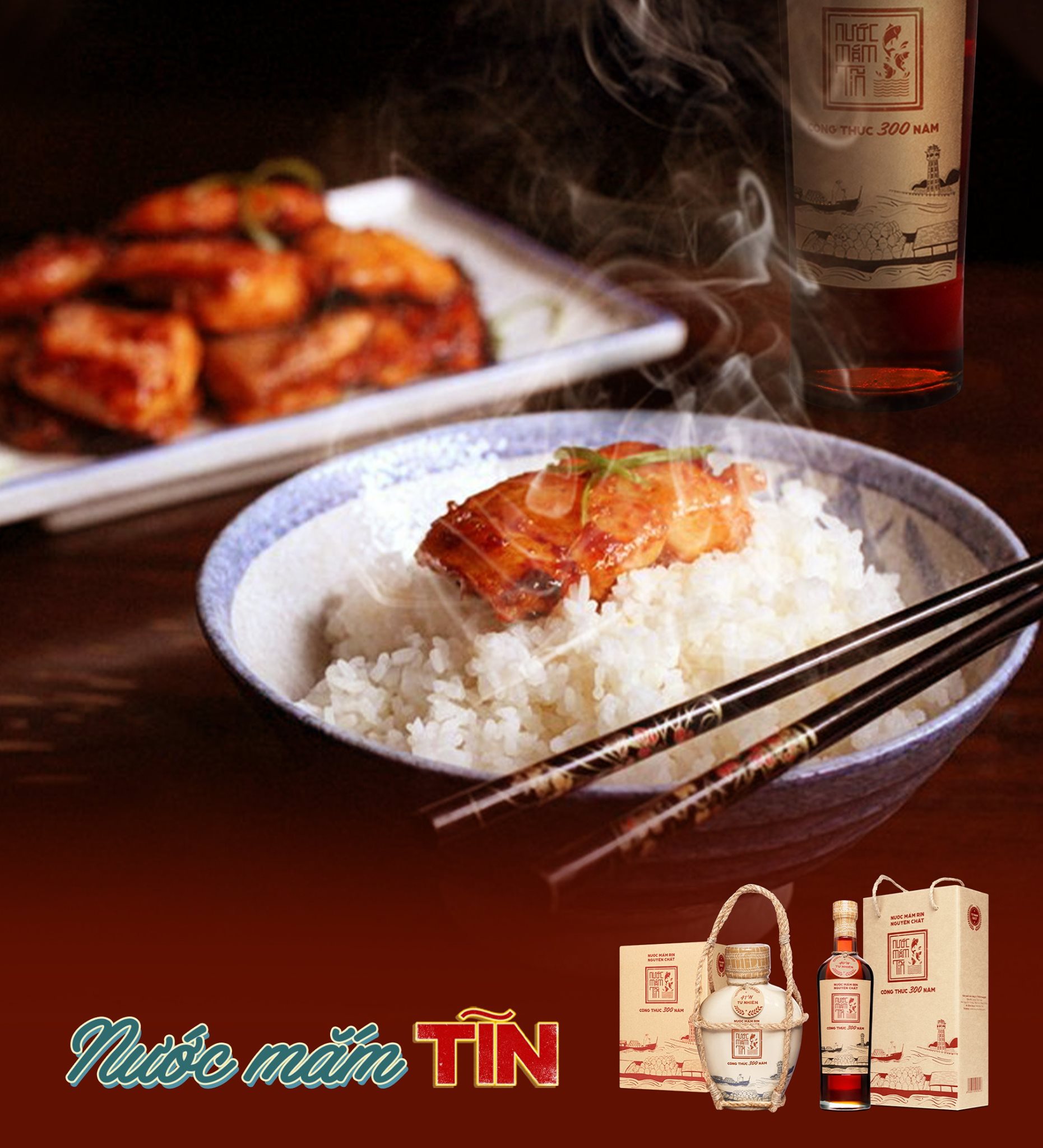 Với công thức 300 năm từ Làng Chài Xưa, nước mắm Tĩn trứ danh ngày nay là nước mắm rin đặc sệt kéo rút trực tiếp từ thùng gỗ ủ chượp, chín chậm từ 12 - 24 tháng với cá cơm than con to béo tươi và muối tinh khiết