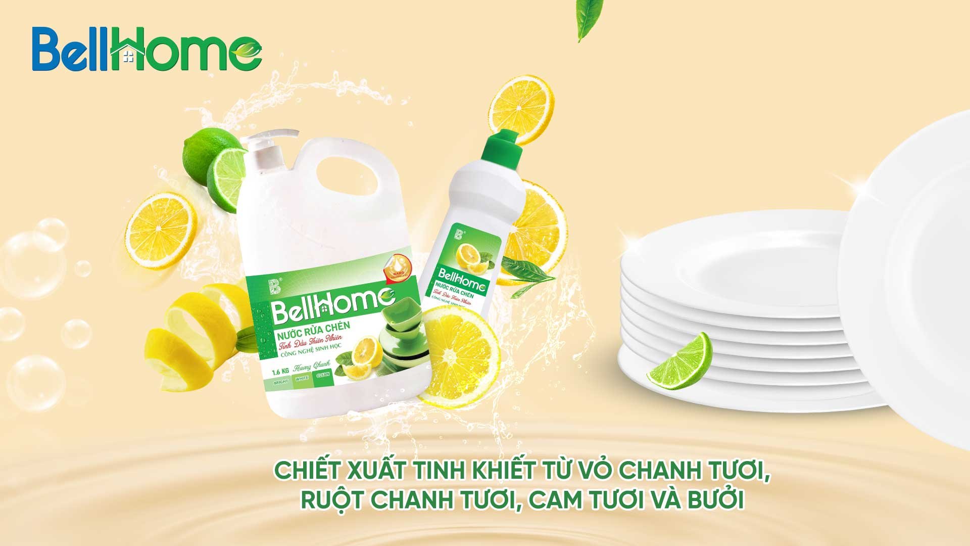 Công nghệ sinh học được Bell Home áp dụng trong nước rửa chén đó chính là công nghệ enzym sử dụng enzym là chất hoạt động bề mặt có khả năng bóc tách các vết bẩn nhanh chóng giúp loại bỏ mọi vết bẩn, dầu mỡ, mùi hôi khó chịu ở trên chén bát. Bên cạnh đó, sản phẩm được bổ sung tinh chất thảo dược giúp ngăn ngừa dầu mỡ bám dính trở lại mà không để lại mùi lạ, độ nhờn trên đồ vật sau khi làm sạch.