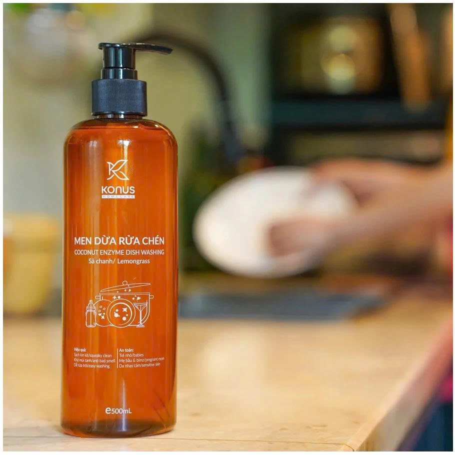 Nước Rửa Chén Men Dừa Konus Homecare 500ml – Tinh Dầu Sả Chanh, Thiên Nhiên, Dịu Da Tay