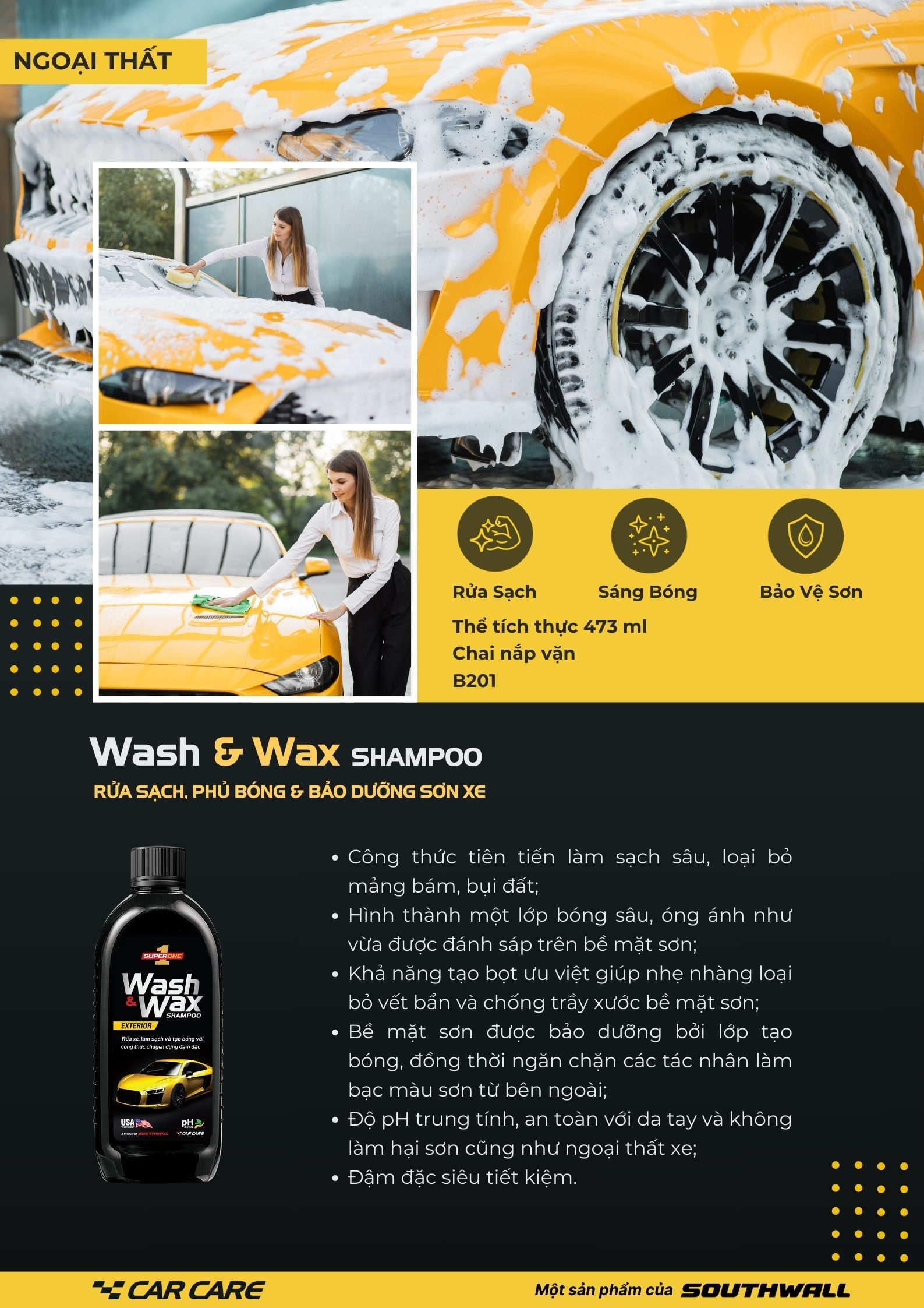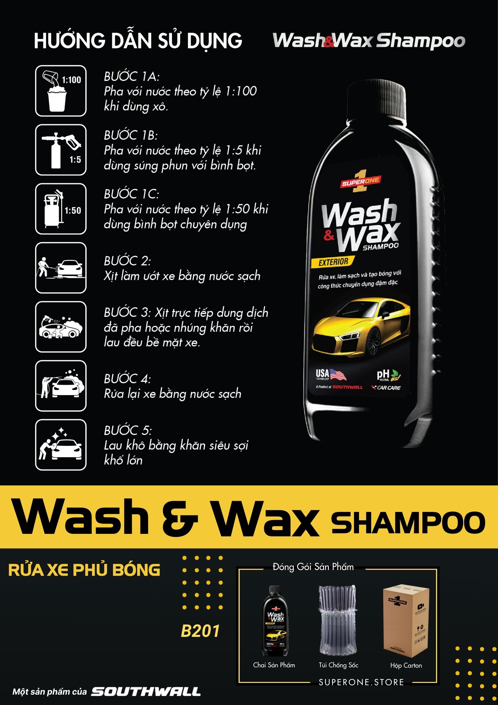 ✨Nước Rửa Xe Và Phủ Bóng SUPERONE Wash And Wax Shampoo – Exterior SOUTHWALL B201
