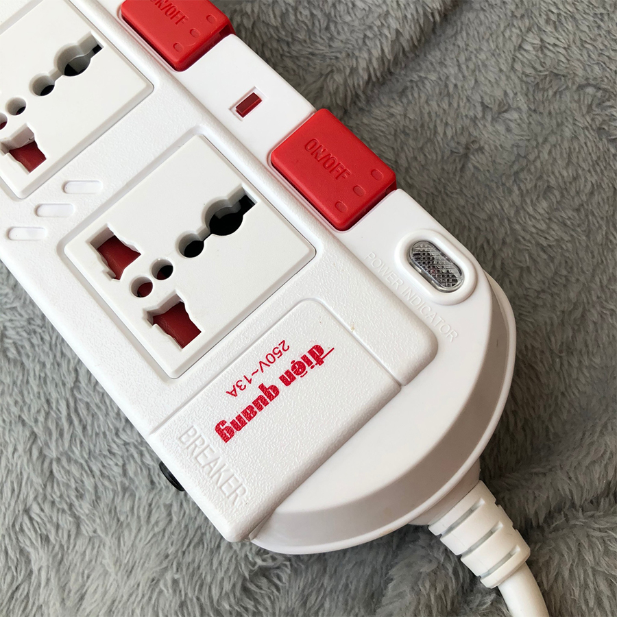 Ổ Cắm 5 Lỗ 3 Chấu Dây 5 Mét Điện Quang ĐQ ESK 5W.SM750SL - Trắng Đỏ được thiết kế khoa học, an toàn tối đa cho người sử dụng theo tiêu chuẩn CE của Châu Âu. Ổ cắm có dây dẫn điện dài 5m với lá đồng nguyên chất có tính đàn hồi cao. Ngoài ra, ổ cắm còn có công tắc tự