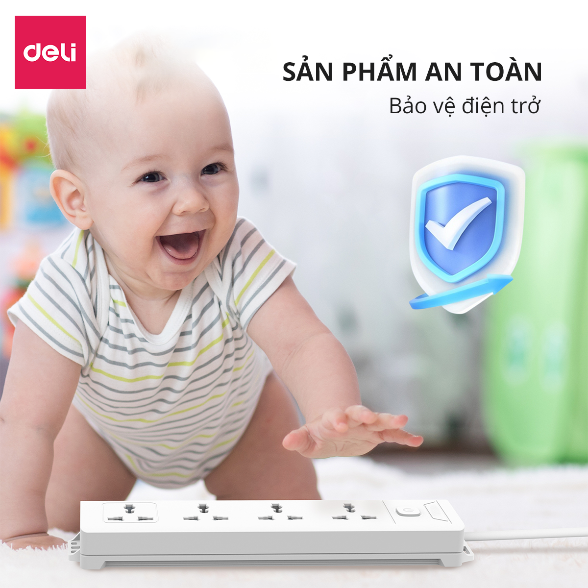 Ổ Cắm Điện Đa Năng Có Công Tắc Nguồn 3/4/6 Ổ , 3/5M Dây Chống Giật Chống Cháy Chất Lượng Cao Deli - Hàng Chính Hãng - ET401 - 406