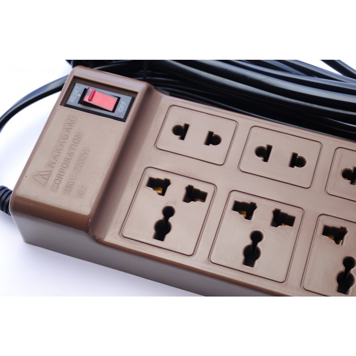 - Ổ cắm điện đa năng 8 lỗ cắm Nakagami công nghệ Nhật Bản. Sản phẩm ổ cắm điện Nakagami có thiết kế kiểu dáng nhỏ gọn cùng với chiều dài dây lên đến 5m có