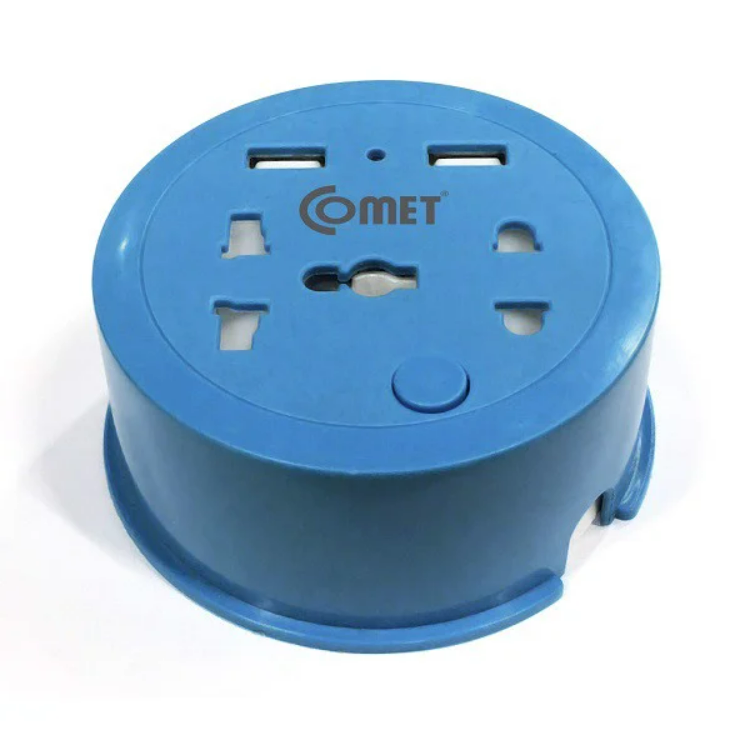 Ổ Cắm Điện Du Lịch COMET CES9111 Dây Quay Tròn Dài 1M, 2 Ổ USB, 1 Ổ 3 Chấu, 1 Ổ 2 Chấu